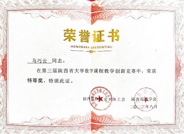 8月19日,第三届陕西省大学数学课程教学创新竞赛活动颁奖仪式暨第四届陕西高校大学数学课程建设与教学改革研讨会在榆林公司举行,威廉希尔中国官网代数类课程教学团队马巧云、王挺、赵艳推送的作品《正射影(最佳逼近)》在此次活动中获得特等奖,马巧云教授在大会上做了题为《基于成果导向(OBE)理念的高等代数教学创新与实践》的报告。