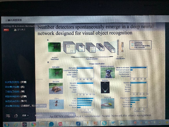 杨全博士主要从事人工智能应用、机器学习、计算机视觉等方面的研究,于2019年获得国家公派出国留学资格,目前作为访问学者正在英国巴斯大学进行为期一年的访学。杨全博士首先对新冠肺炎疫情暴发中的英国现状作了客观的简介,然后结合访学经历介绍了英国巴斯市的风土人情,巴斯大学的历史、科研、教学水平,计算机科学系的教学安排和校企合作工作,以及她在访学期间听课和参与研究小组线上线下活动的情况,最后从机器学习目前存在的问题、深度网络的发展、在视觉对象识别的深度神经网络中自发产生的数字检测器及类人机器学习未来的发展等几方面介绍了她目前的研究工作重点。整个线上学术报告会持续了2个小时,老师们与杨全博士在钉钉群内频繁互动,积极研讨,气氛热烈。杨全老师针对老师们提出的关于科研过程中遇到的一些问题进行了集中解答并分享了自己的研究经验。讲座结束之际,老师们纷纷表达了线上学习、助力抗疫的决心和必胜的信念,大家将以新的工作方式共同迎接全民抗疫的最终胜利。